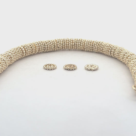 These fancy decorative daisy spacers feature a gold finish or silver plated coating, with an e-coat to help the plating stay longer.