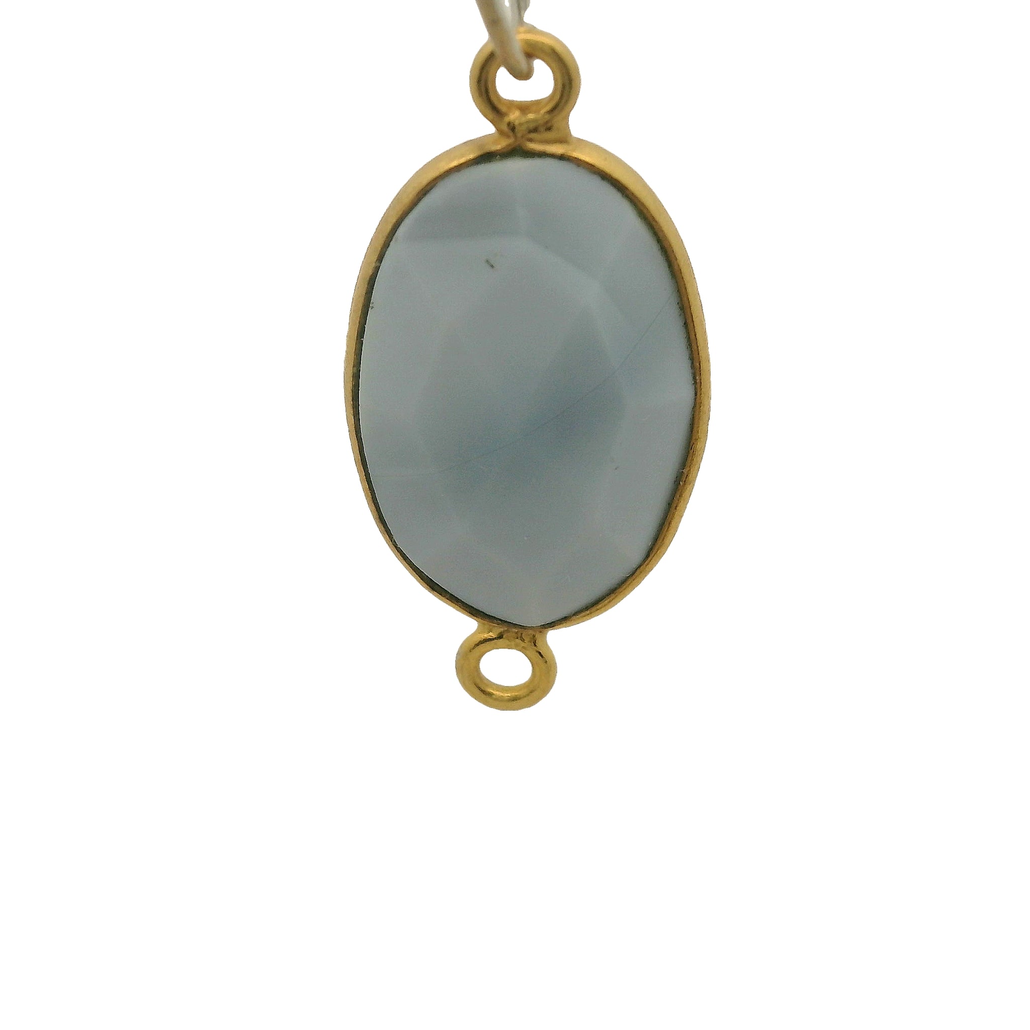 Oval Blue Opal Bezel Connector – Two Loop, 925 Sterling Silver Or Gold Plated Over Silver, Size:10mmx15mm, 1Pc.