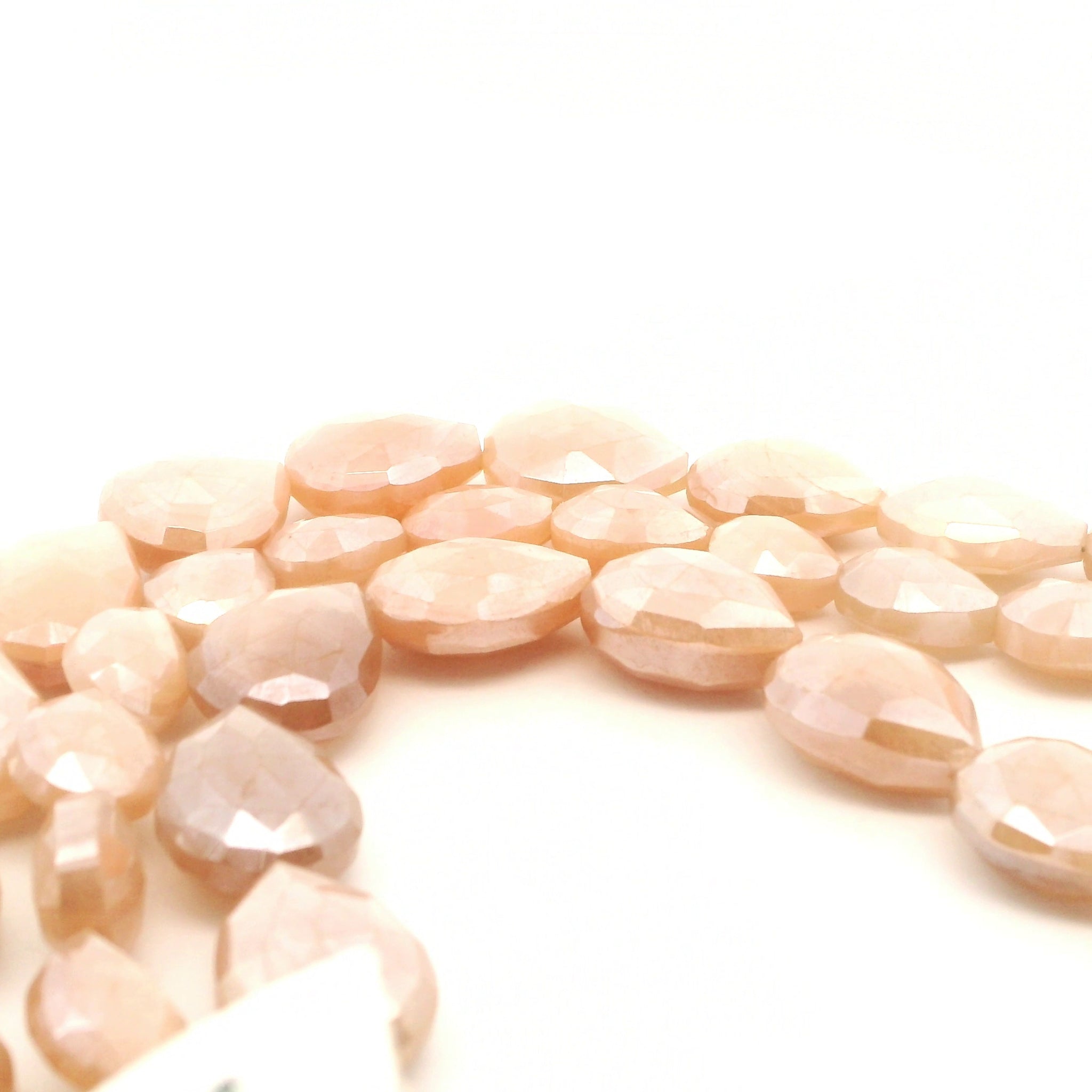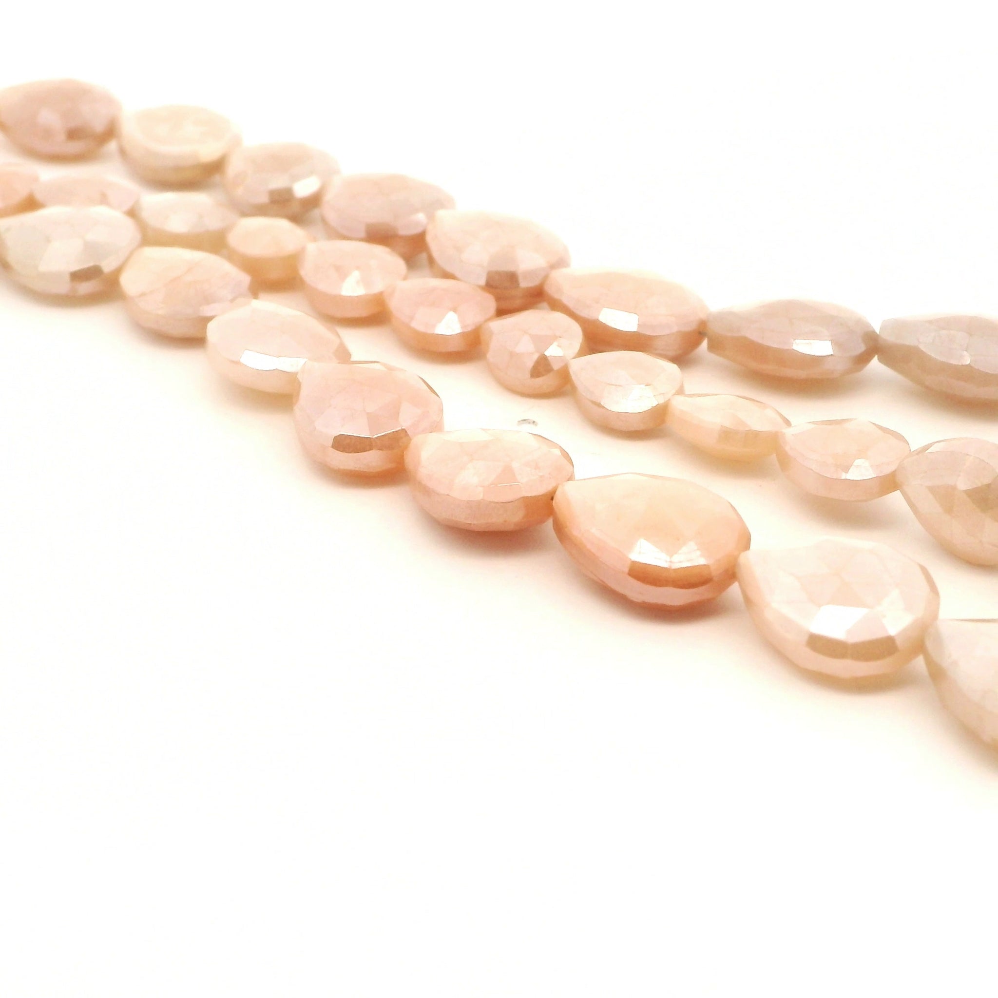 Peach Moonstone Faceted Drop Beads 8mm×10mm, 10mm×12mm, 12×16mm – 16–21 Beads Per Strand