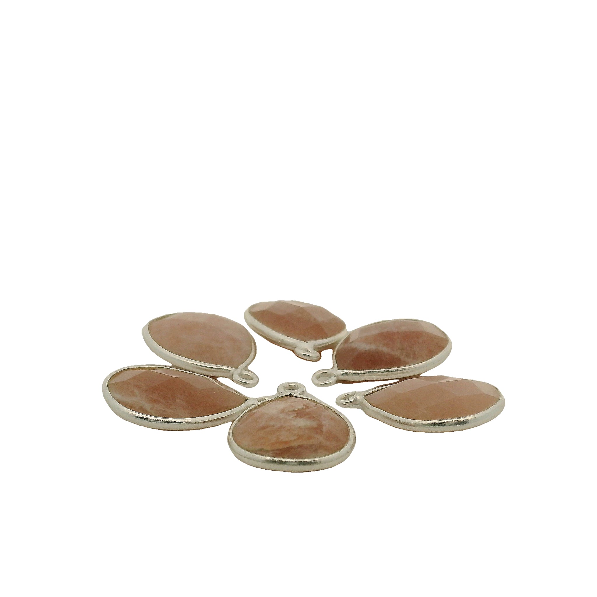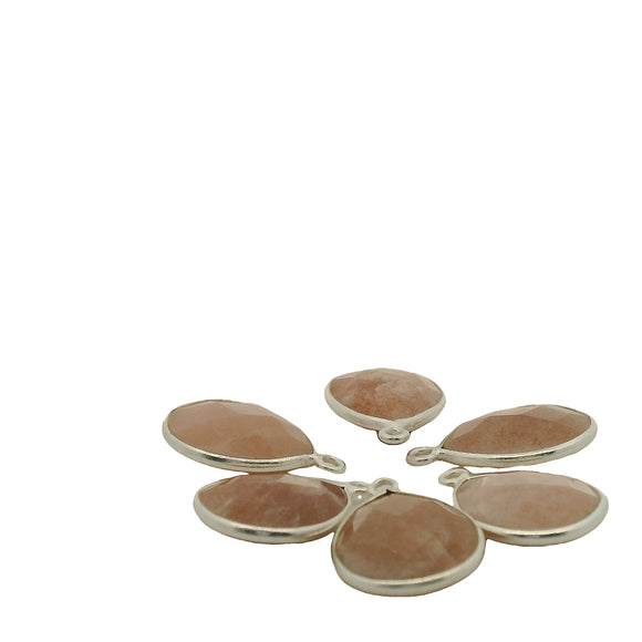 Pear-Shaped Peach Moonstone Bezel One Loop, 925 Sterling Silver, Size: 12mmx15mm, 1Pc.