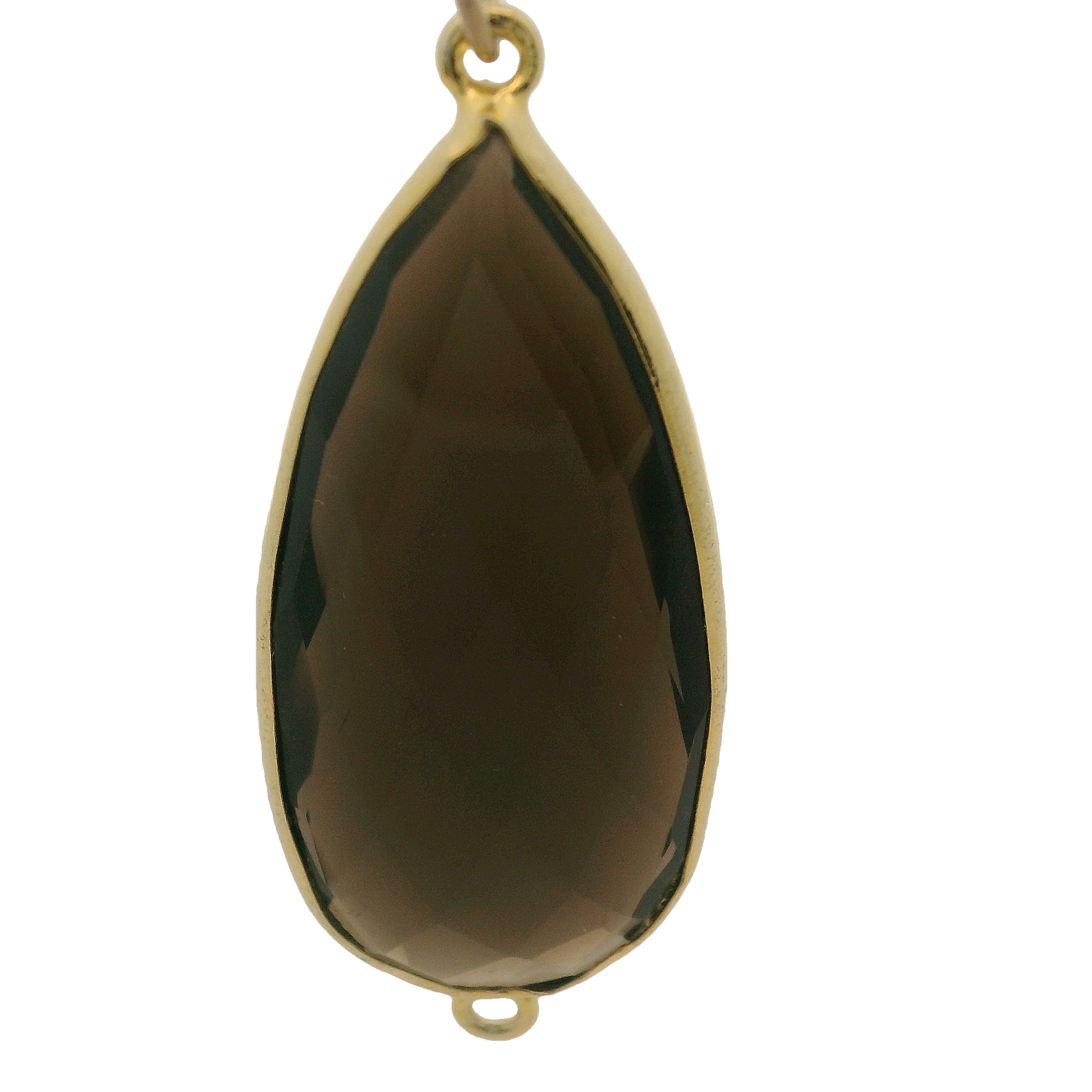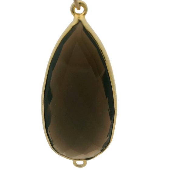 Pear-Shaped Smokey Bezel Connector – Two Loop, 925 Sterling Silver and Gold Plated Over Silver, Size:14mmx32mm, 1Pc.