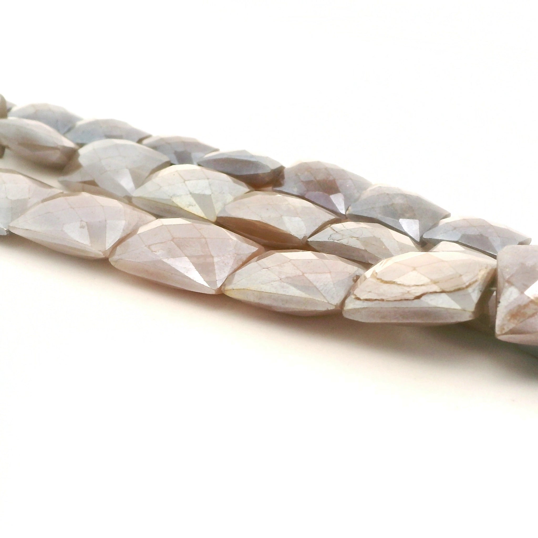 Gray Moonstone Faceted Shield Beads 10mm×14mm, 12mm×16mm, 14mm×18mm – 13–18 Beads Per Strand