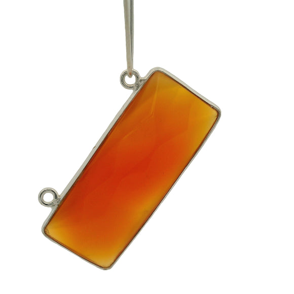 Red Onyx Bezel, Rectangle Shape - Two Loop, 925 Sterling Silver, Size:12mmX30mm, 1Pc.