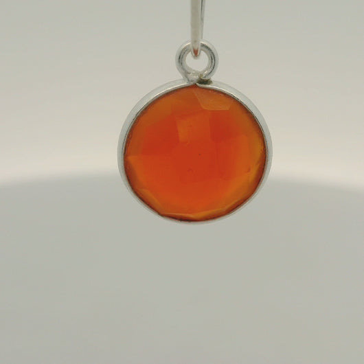 This natural red onyx coin shape one loop bezel features 925 sterling silver or gold plated silver.