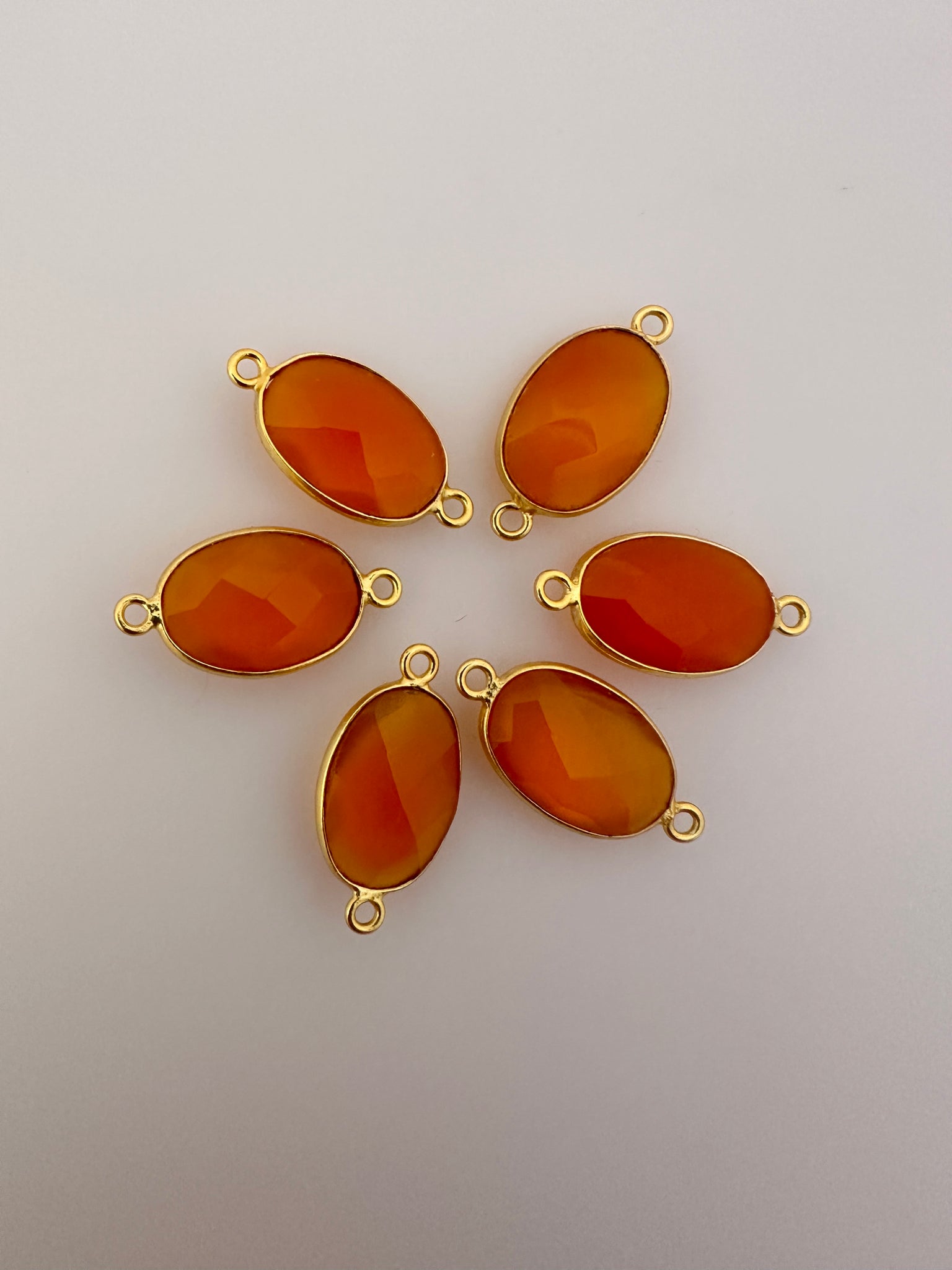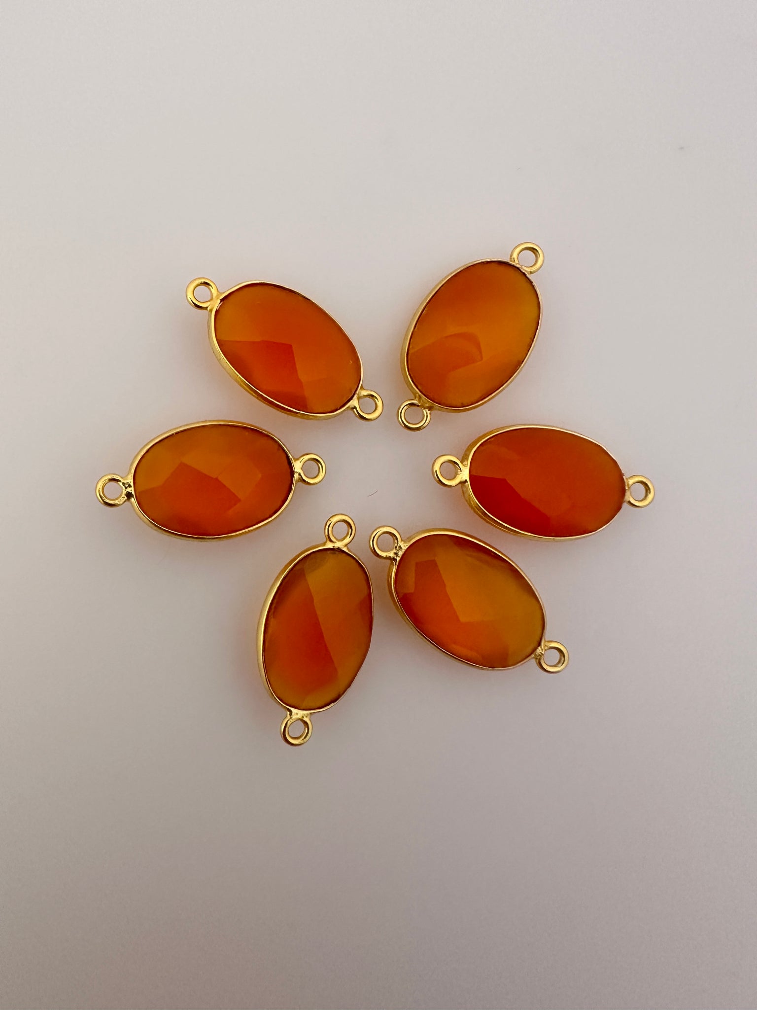 Red Onyx Oval Shaped Bezels,Two Loop - Gold Plated Over 925 Sterling Silver, Size: 10mmX15mm, 1Pc.