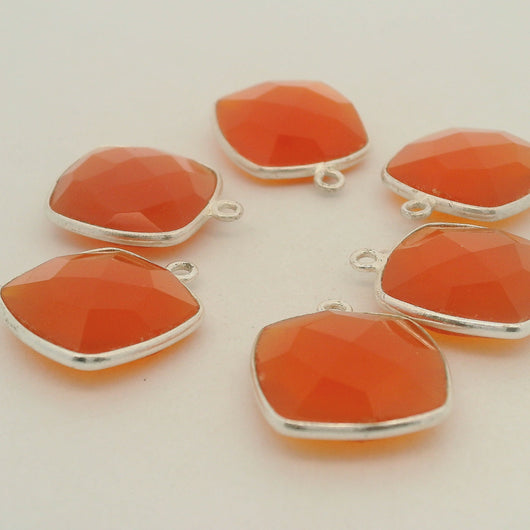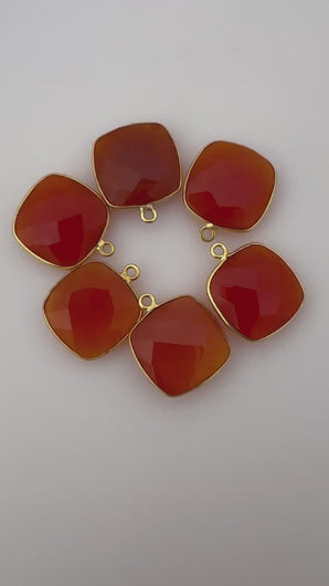 Natural Red Onyx Cushion Bezel One Loop (15mm) - 925 Sterling Silver and Gold Plated Over Silver - 1 pcs