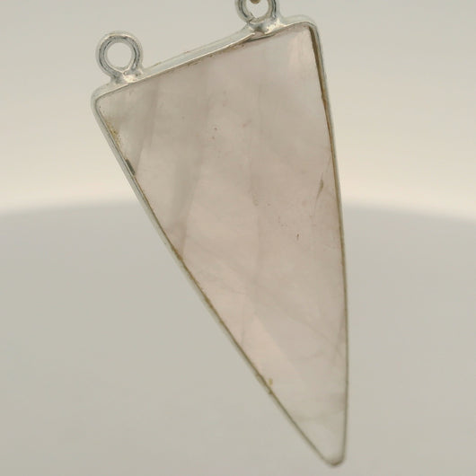 Natural Rose Quartz Triangle Bezel Connector with Two Loops (15 × 35 mm) 925 Sterling Silver - 1 pcs