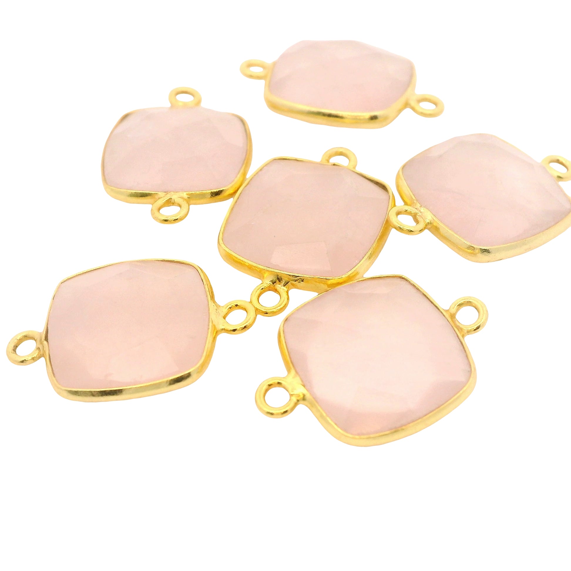 Rose Quartz Connector – Cushion Shape, Gold-Plated Over Sterling Silver Bezel Size :12mm- 1 Piece