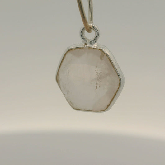 This high-quality natural rose quartz gemstone features a hexagon shape set in a 925 sterling silver bezel with one loop.