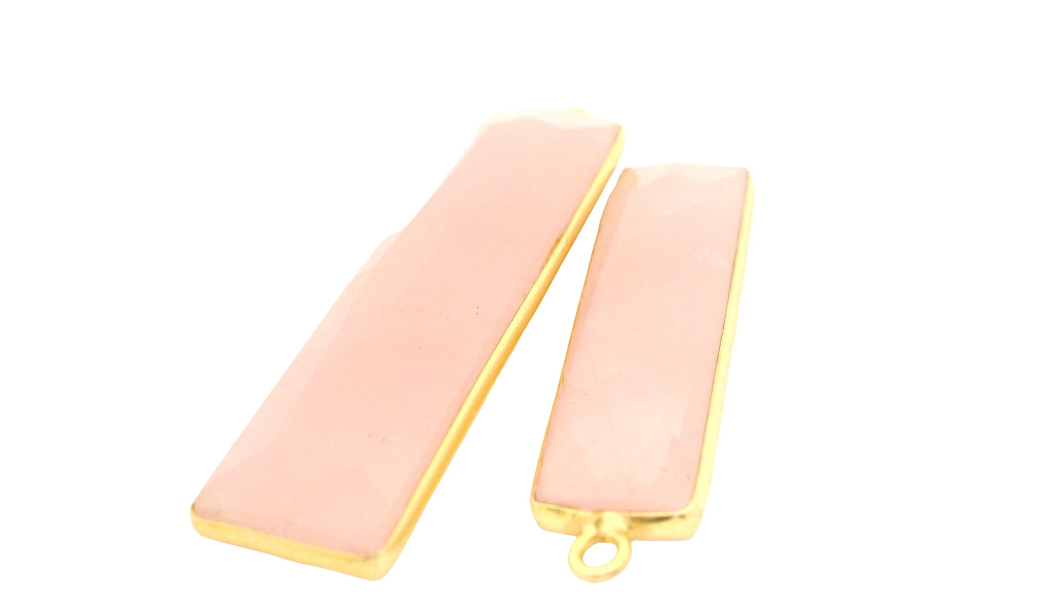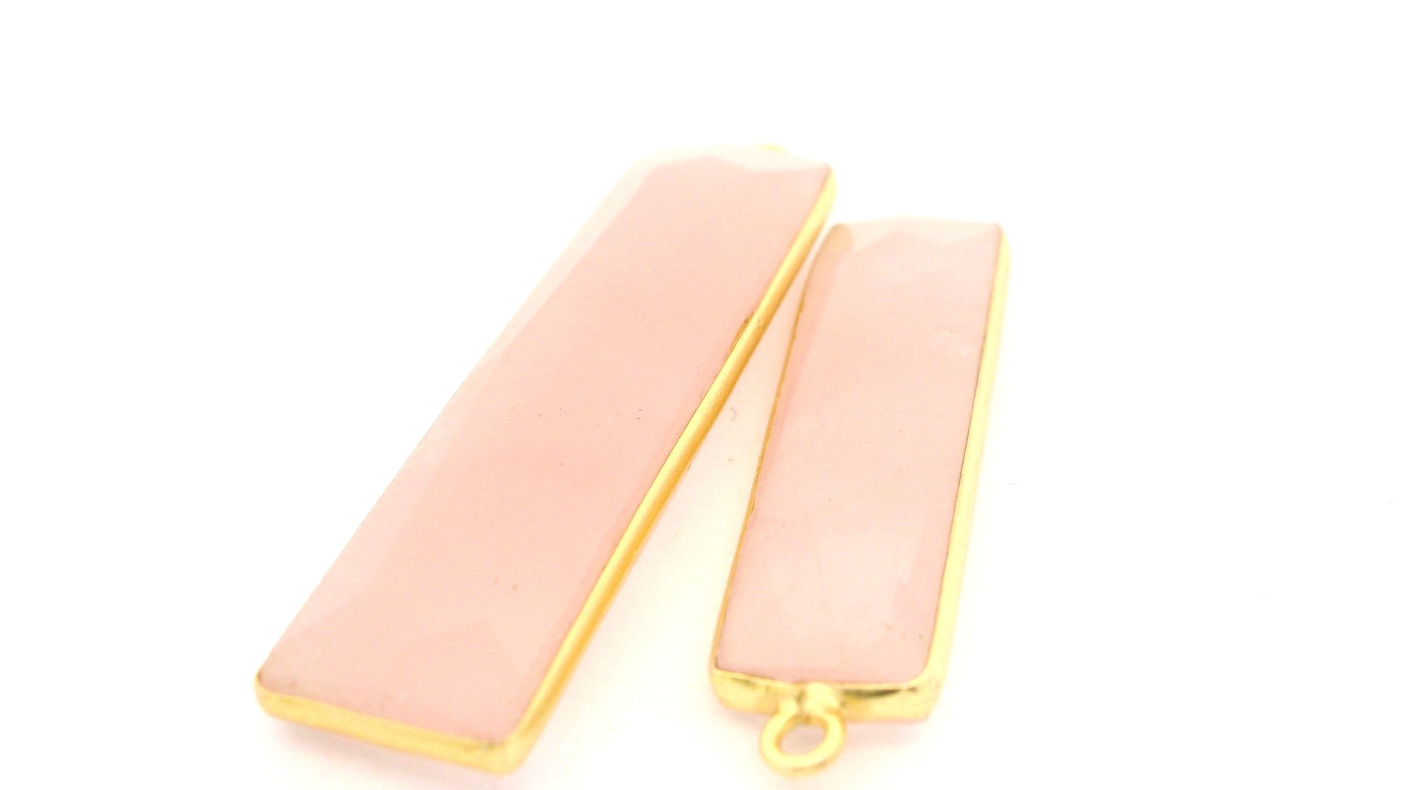 Rose Quartz long drop pendants in a soft pink hue, set in gold plated over sterling silver / 925 silver. Each pendant features a sleek bezel setting with one loop, perfect for creating elegant necklaces or statement earrings.