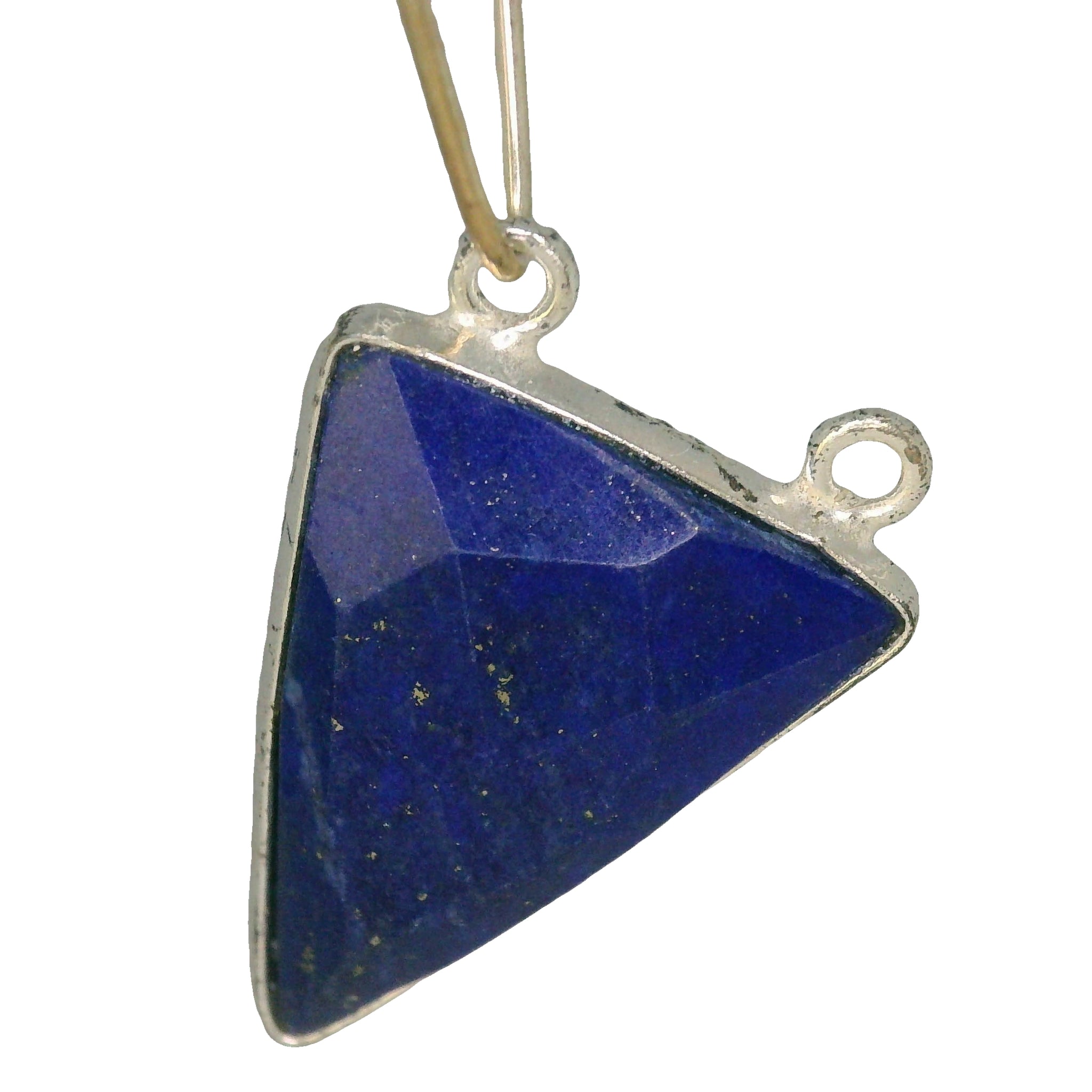 Lapis Lazuli Connector – 1 Piece, Triangle Shape, 15x20mm – Real Gold Plated & Sterling Silver, Two Loops