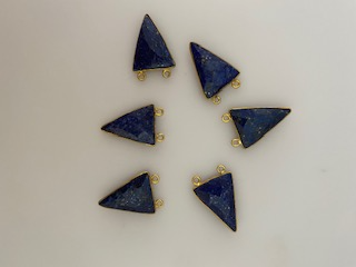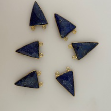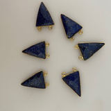 This listing is for one high-quality natural Lapis Lazuli gemstone connector in a triangle-shaped bezel, crafted with real gold-plated sterling silver and featuring two loops.