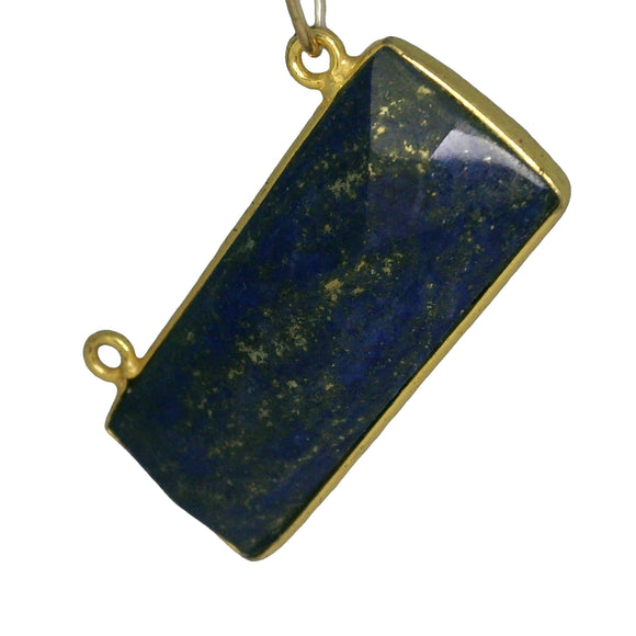 This listing is for one high-quality natural Lapis Lazuli gemstone connector in a rectangle-shaped bezel, crafted with gold-plated and sterling silver.