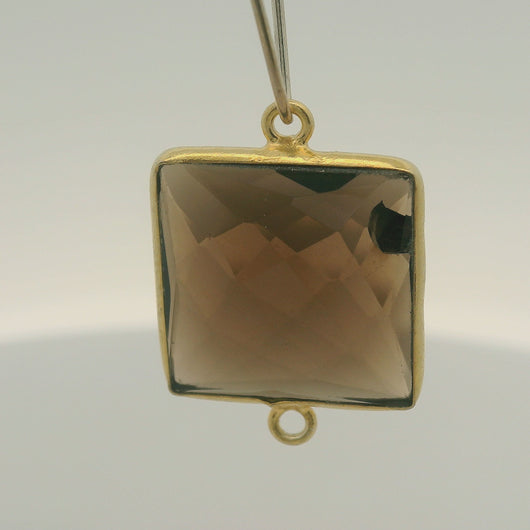 Natural Smoky Quartz Square Bezel Connector (15mm) - Real Gold Plated and Sterling Silver - 1 pcs