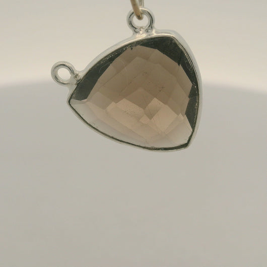 This smoky quartz gemstone connector features a trillion shape bezel setting in 925 sterling silver or gold plated silver finishes.