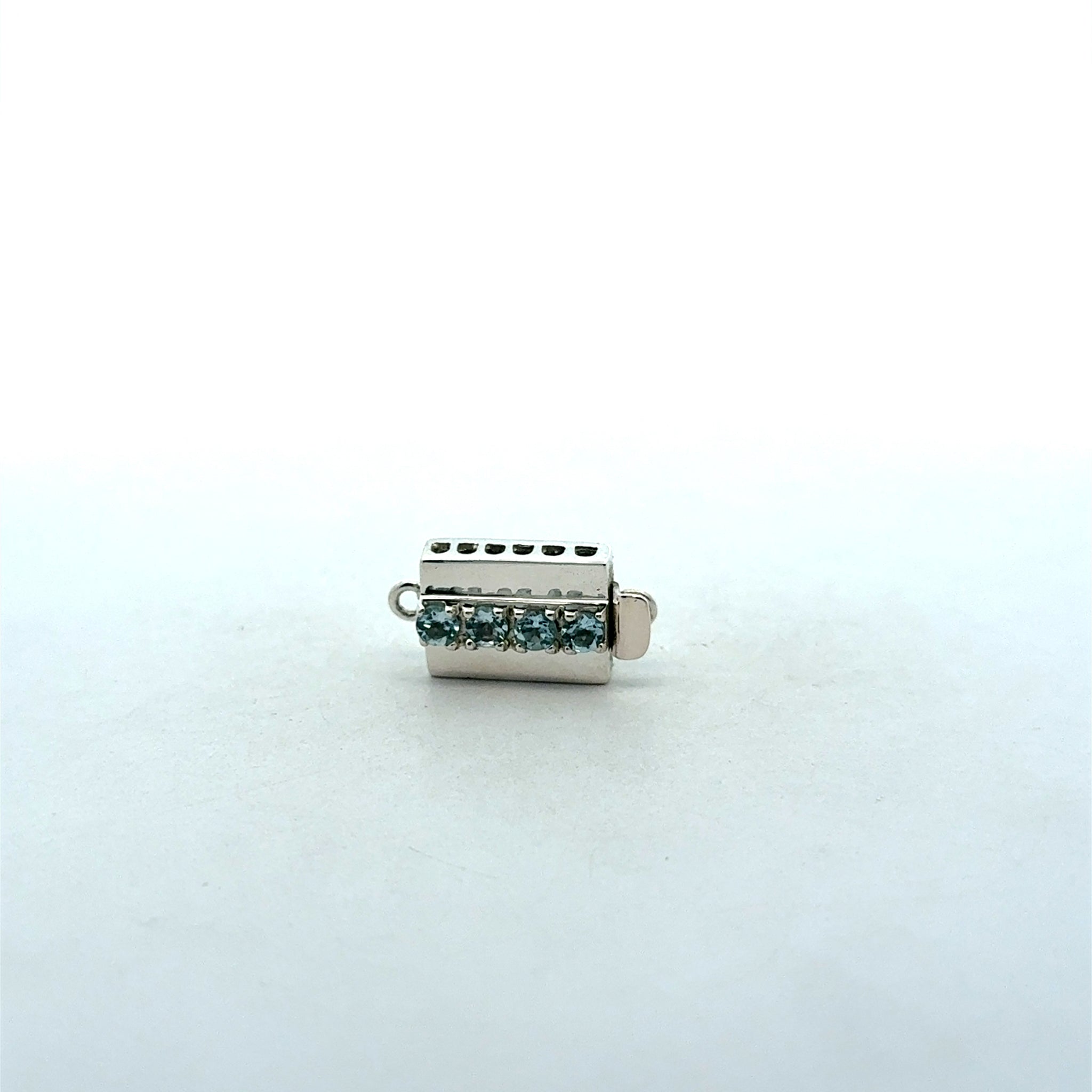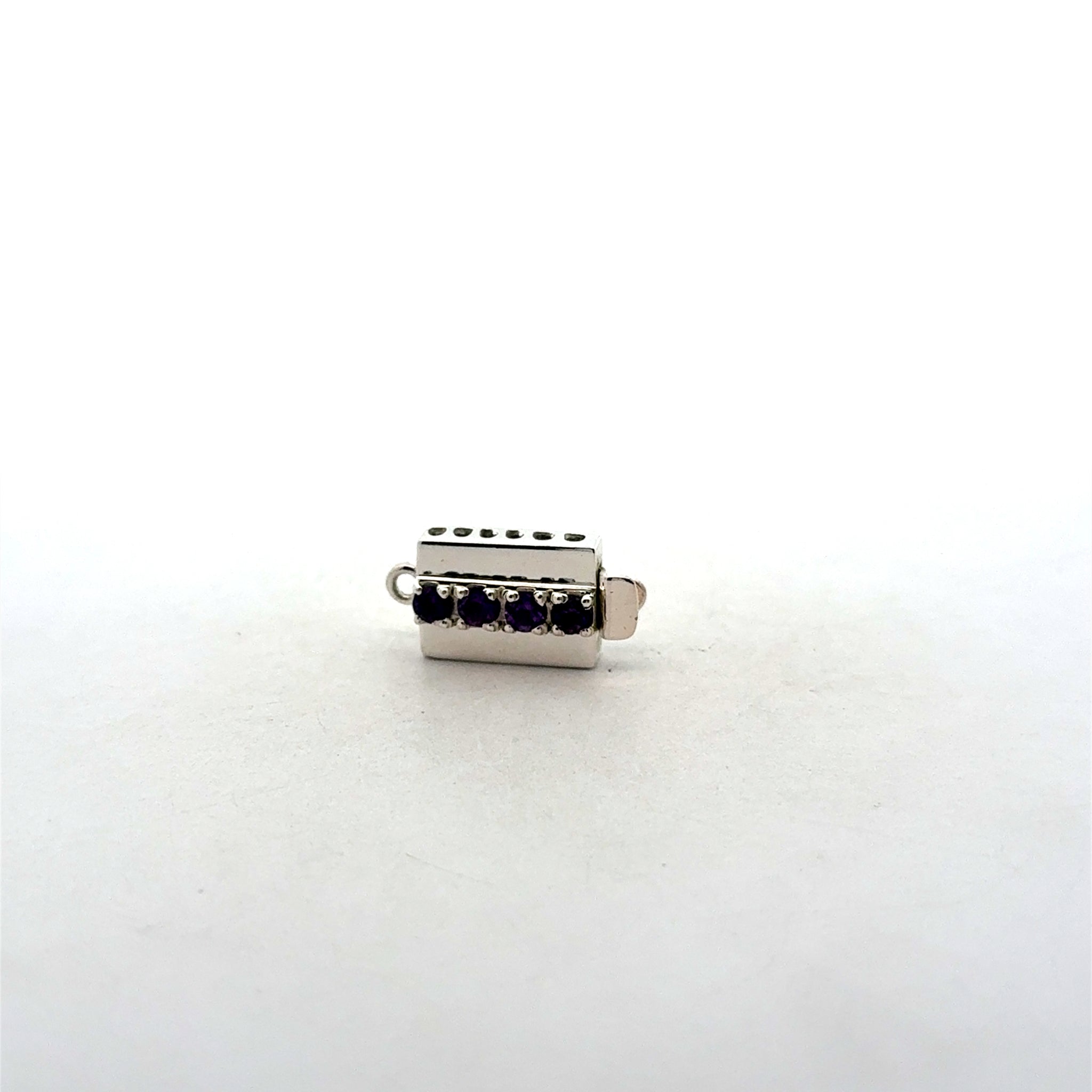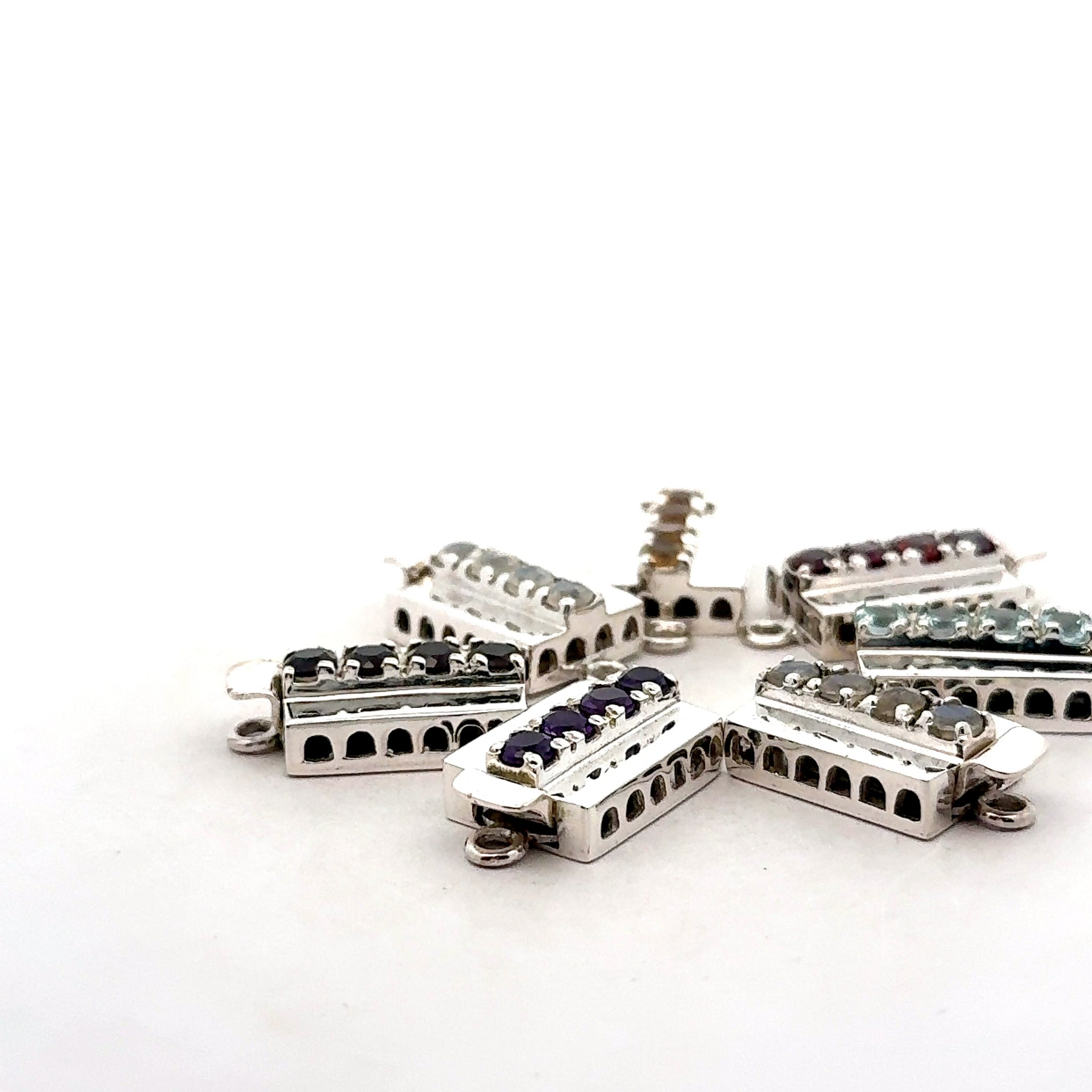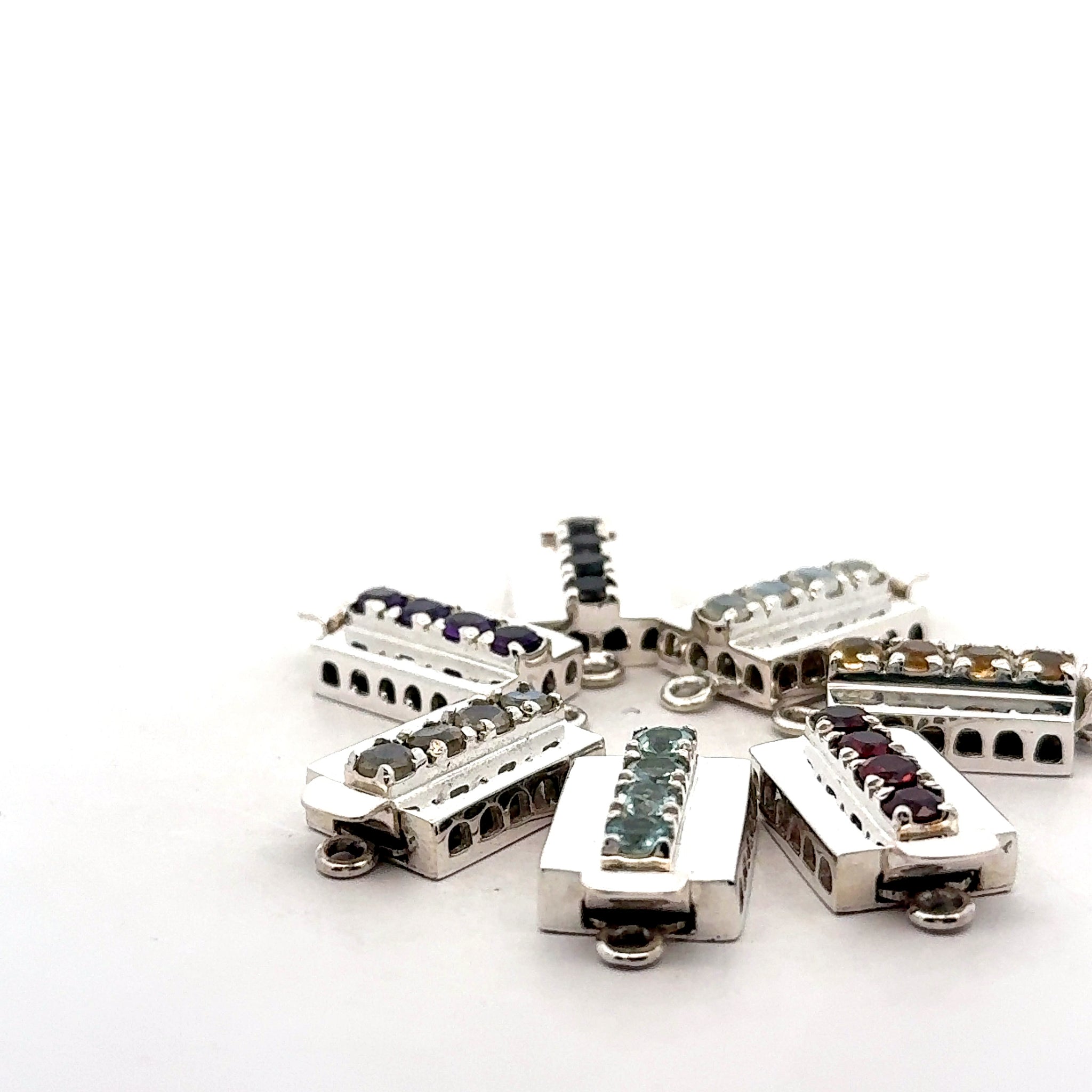 Sterling Silver Rectangle Box Clasp with Four 4mm Natural Gemstones | 13x27mm Loop-to-Loop Clasp | Gemstone Jewelry Clasp for Necklaces & Bracelets
