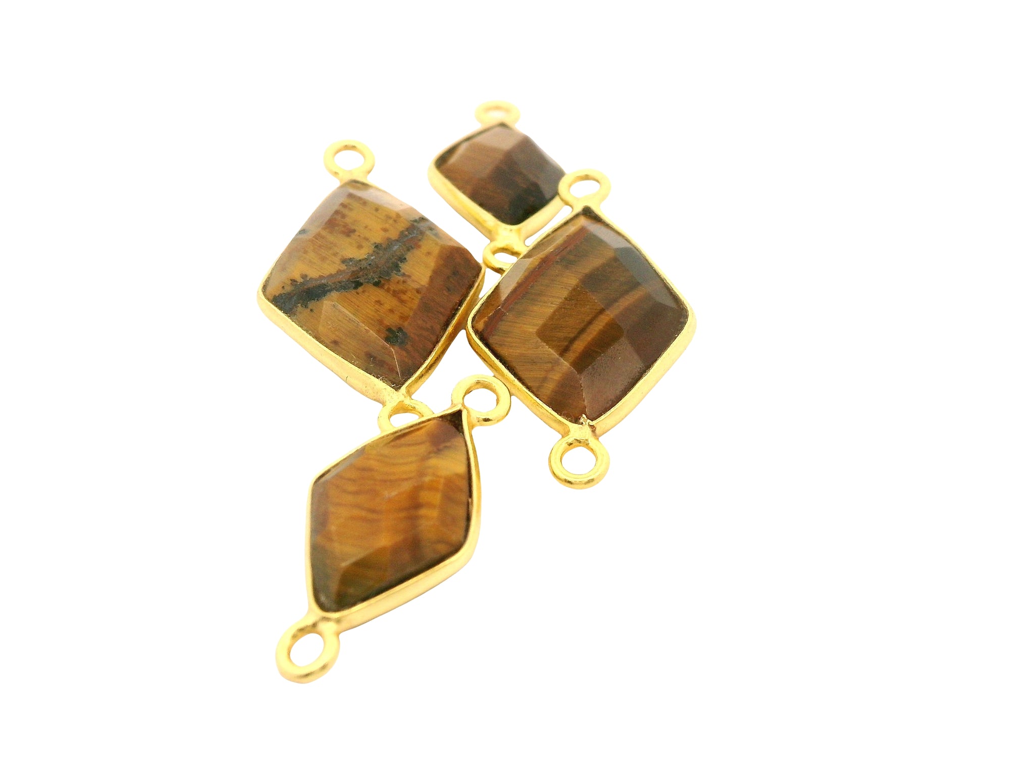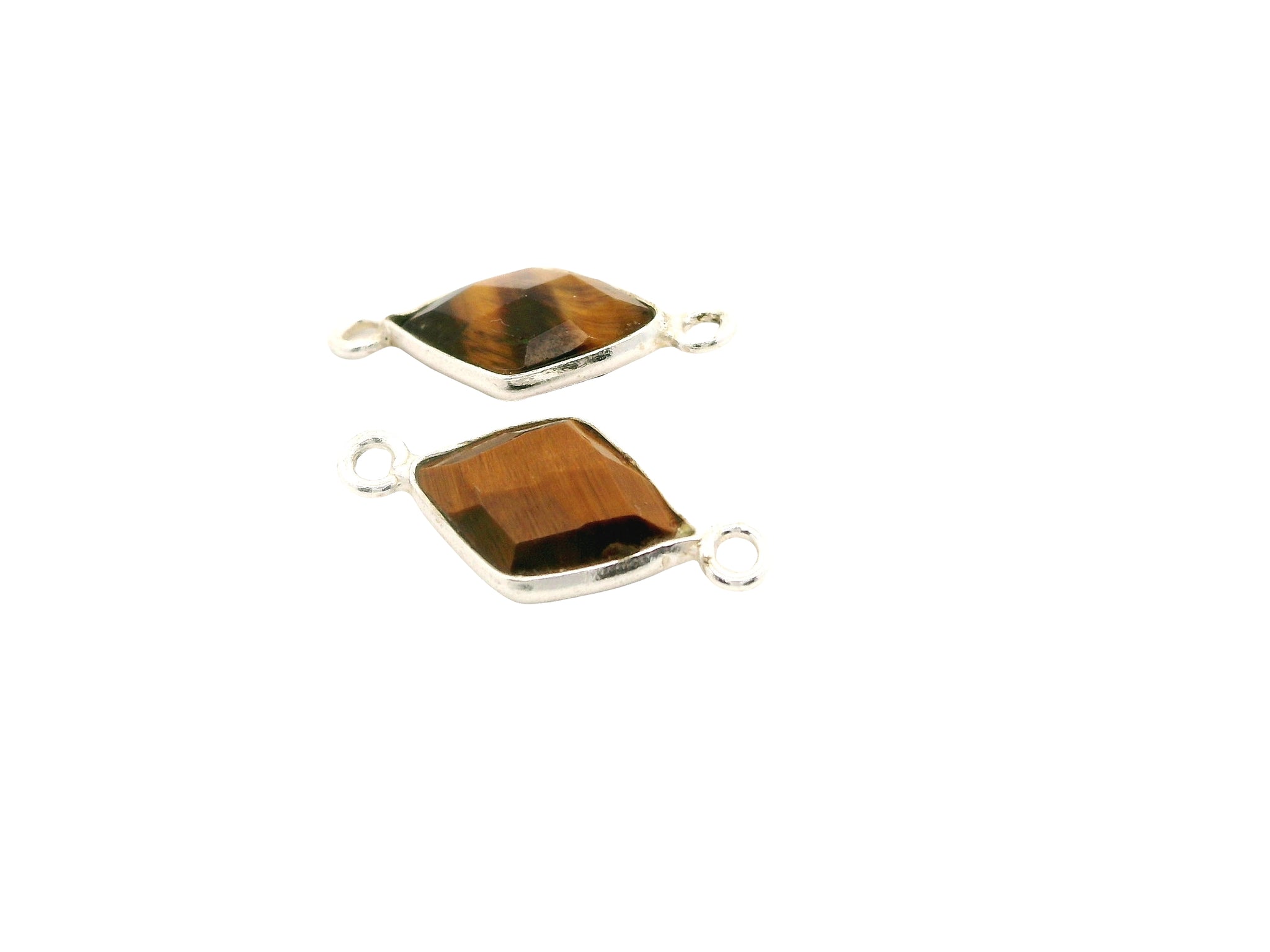 Tiger Eye Diamond Shape Bezel Connector 8x12mm & 12x15mm – Gold Plated Over Sterling Silver or 925 Silver