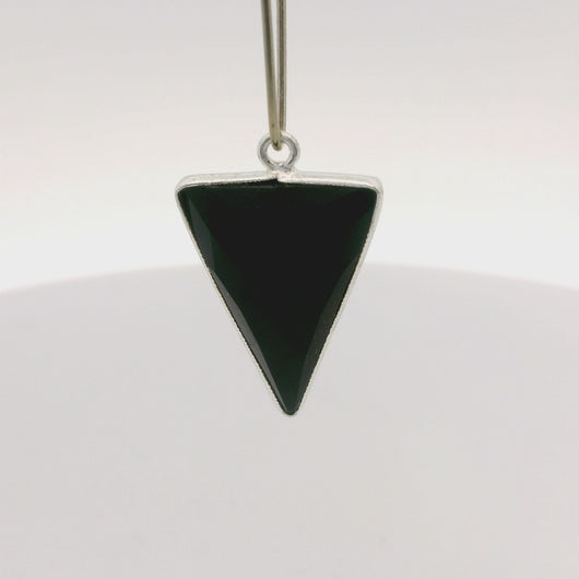 This natural black onyx triangle bezel features a one-loop design set in 925 sterling silver.
